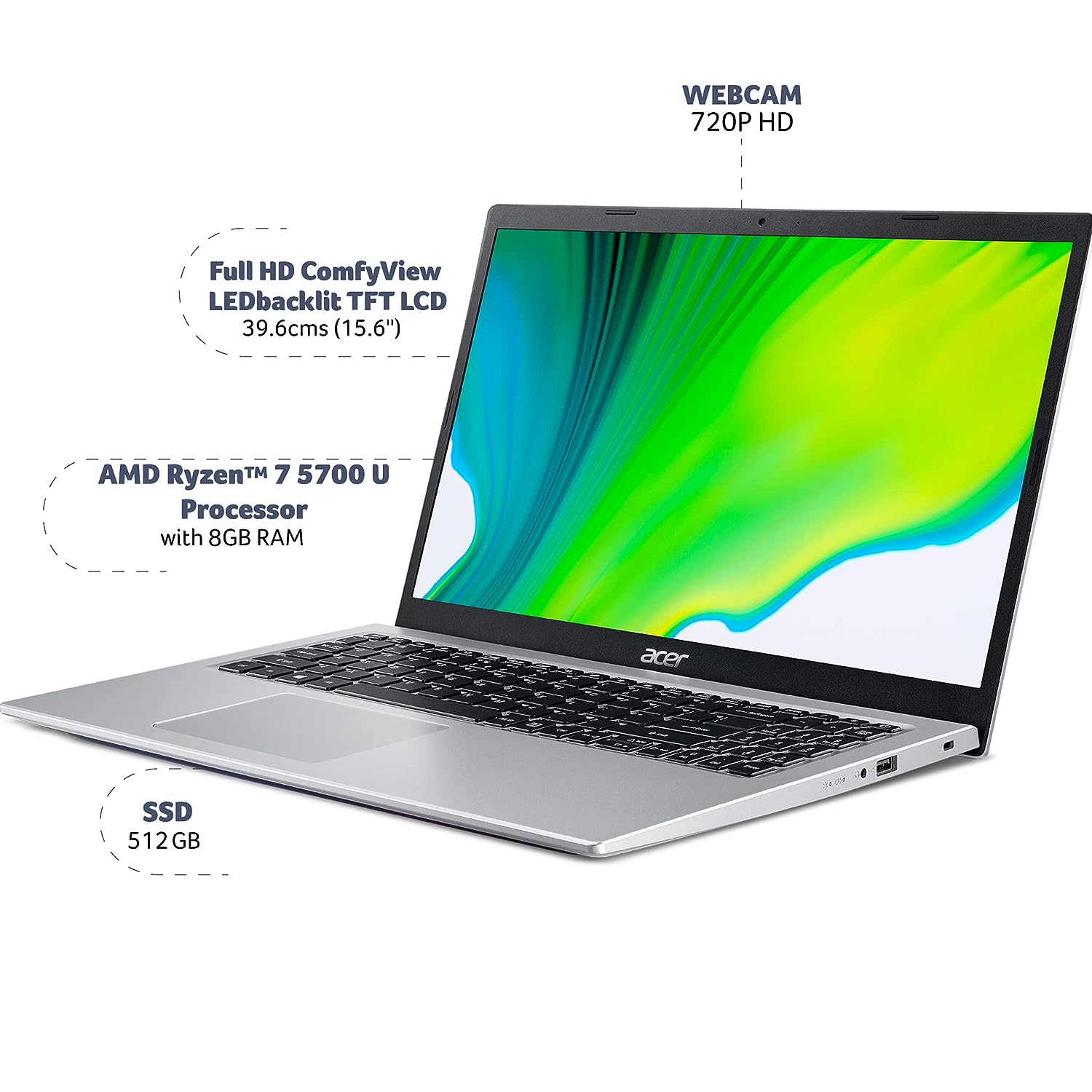 At its core, the Acer Aspire 5 A515-45-R9PX features a stellar AMD Ryzen 7-5700U processor, designed to enhance your computing experience with remarkable speed and performance. With a capable 8GB of RAM, this laptop ensures smooth multitasking and responsive performance, allowing you to seamlessly switch between applications and maximize your productivity.
