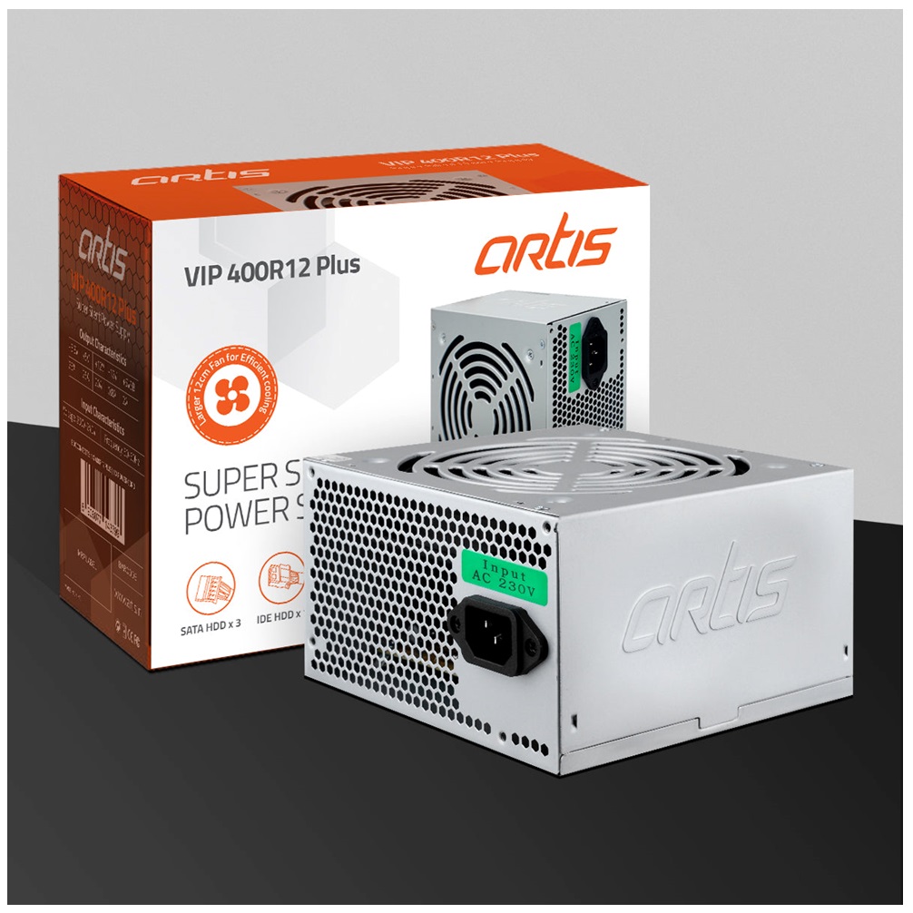 Introducing the Artis VIP400R12 Plus Super Silent Power Supply, a high performance and efficient power supply unit designed to meet the power needs of your computer system. Known as the VIP400R12 Plus model, this power supply offers a number of features to ensure stable and reliable power delivery to your components while maintaining super silent operation.