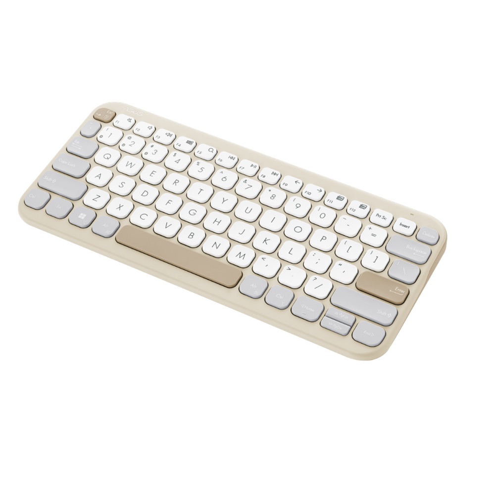 Introducing the Asus Marshmallow KW100 Wireless Bluetooth Keyboard, a stylish, compact and lightweight input device designed to meet your mobile and desktop computing needs. With its attractive "oat milk" color, this keyboard combines comfort with aesthetics, making it a perfect travel accessory.