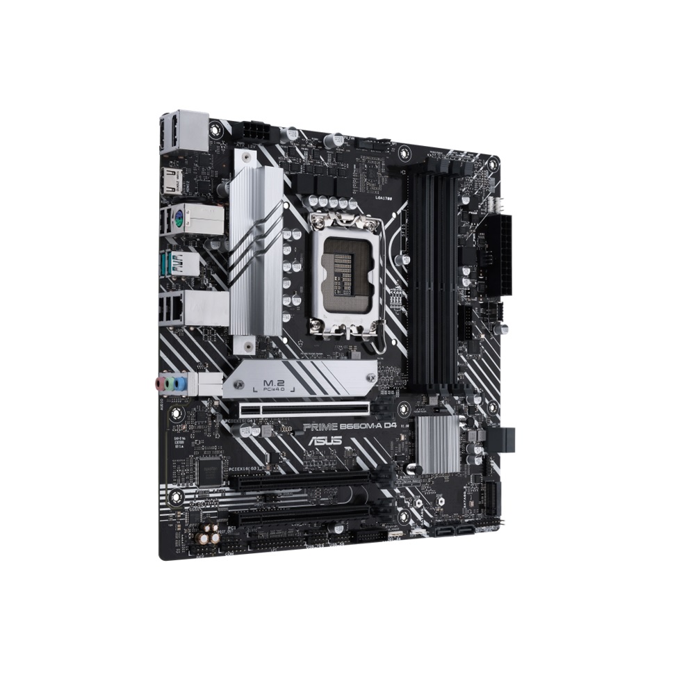 The ASUS PRIME B660M-A-D4 motherboard is a featured MicroATX alternative designed for Intel's 11th and 12th generation processors. With its compact form factor, it provides a balance between size and functionality, making it suitable for a wide variety of system builds.