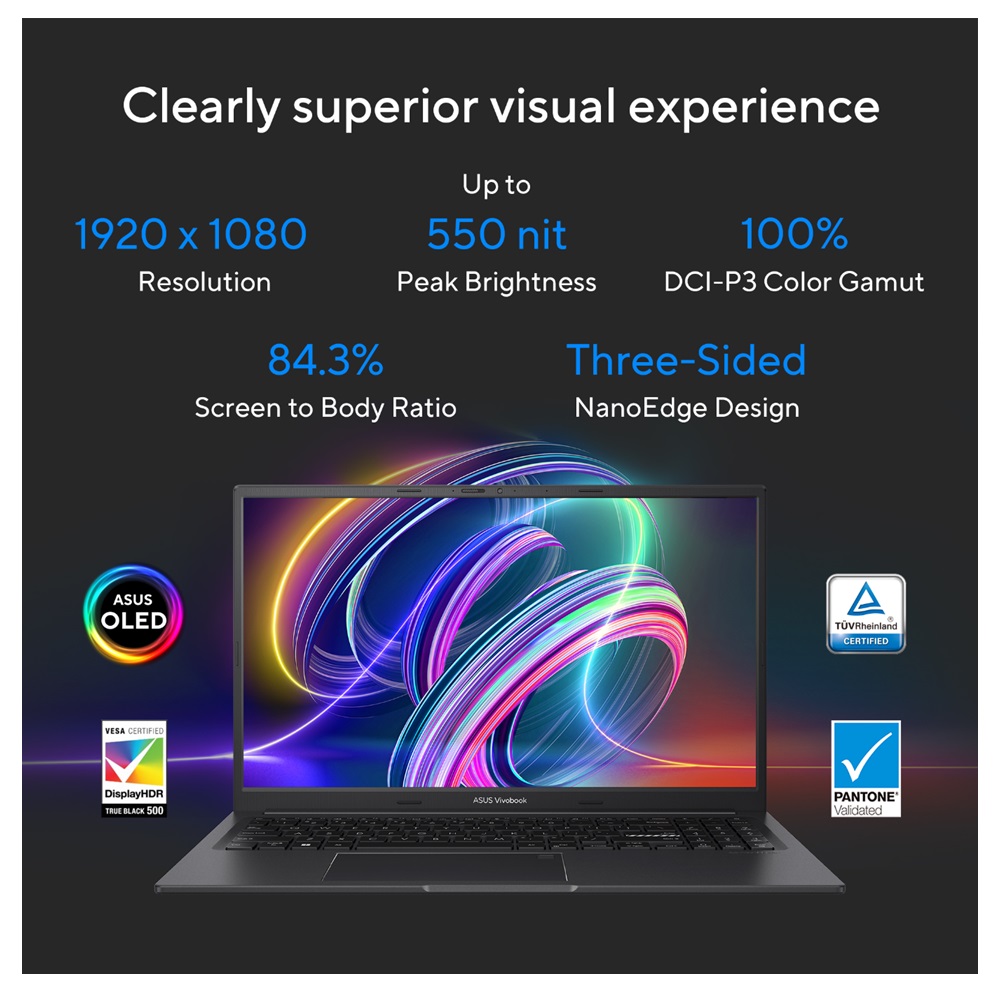 Introducing the Asus Vivobook 15X Laptop, a powerhouse of productivity and entertainment packed into a sleek and stylish design. Boasting a 15.6-inch FHD OLED Glossy Display, every image and video comes to life with stunning clarity and vibrant colors, making it perfect for both work and play.