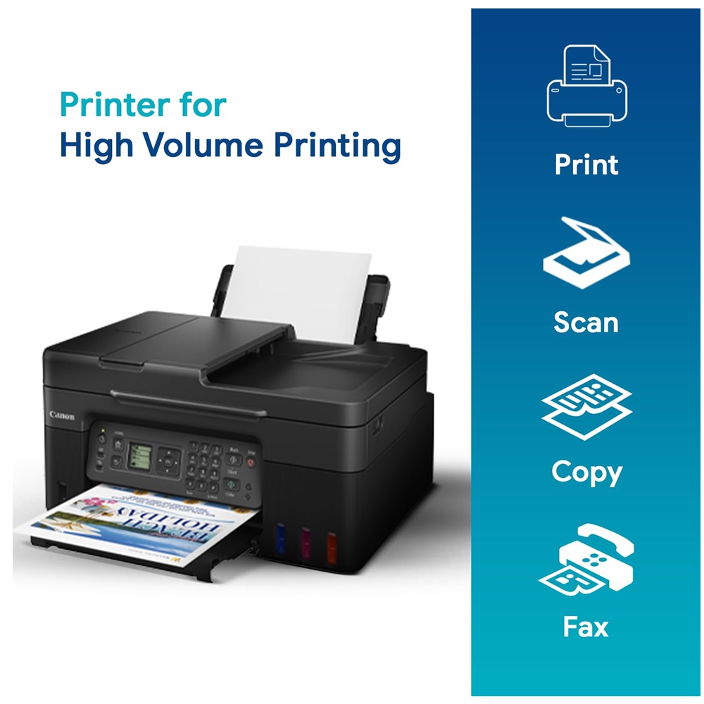 With the Canon G4770, you get an all-in-one solution that meets all your document needs. Whether printing important reports, making high-quality copies, digitally scanning documents, or sending and receiving faxes, this printer has your back.