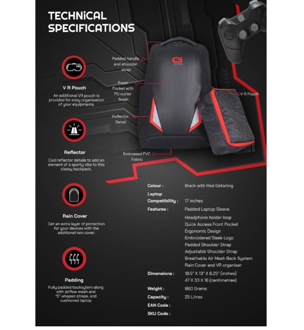 Featuring a spacious main compartment, this backpack offers ample storage space for your gaming laptop, accessories, and personal items. Whether you need to carry your gaming headset, mouse, keyboard, or other peripherals, there's plenty of room to keep everything organized and easily accessible.