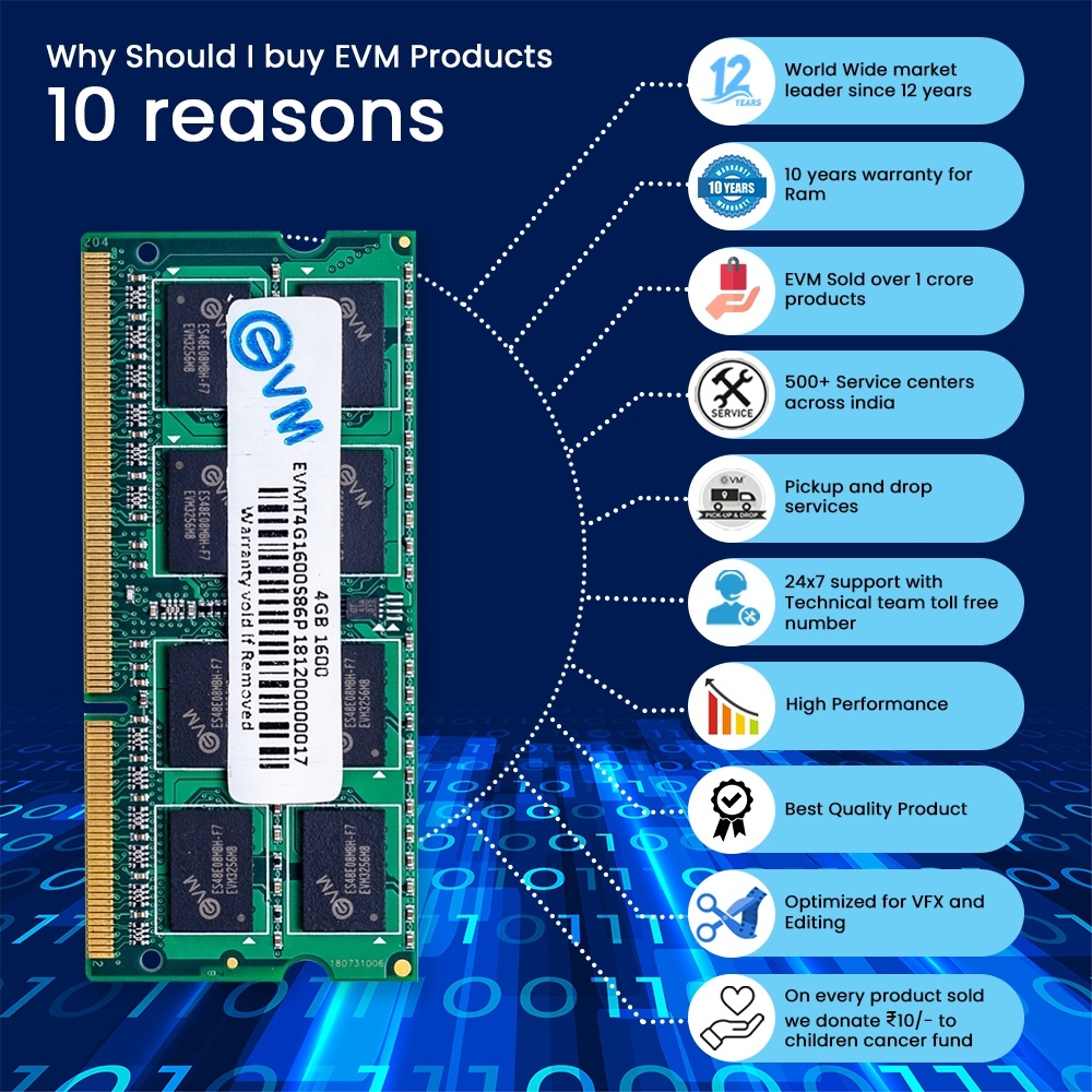 Upgrade your laptop's capabilities with EVM 4GB DDR3 RAM at 1600 MHz for Laptop. Whether you need better multitasking or an overall smoother computing experience, this memory module provides the reliability and performance to boost your laptop's performance. Enjoy a more responsive and efficient computing experience with EVM 4GB DDR3 RAM for Laptop.