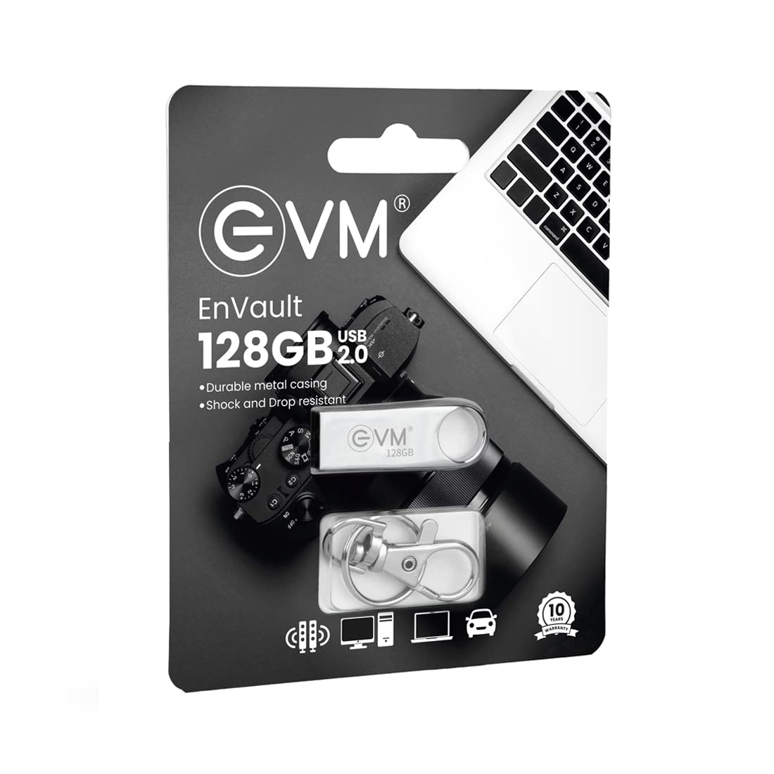 Introducing the EVM Envault 128GB USB 2.0 Pendrive – your ultimate solution for secure data storage and convenient file transfer. This sleek and robust metal black USB drive, model EVMPDV/128GB, boasts impressive features that make it an indispensable device for professionals and general users alike.