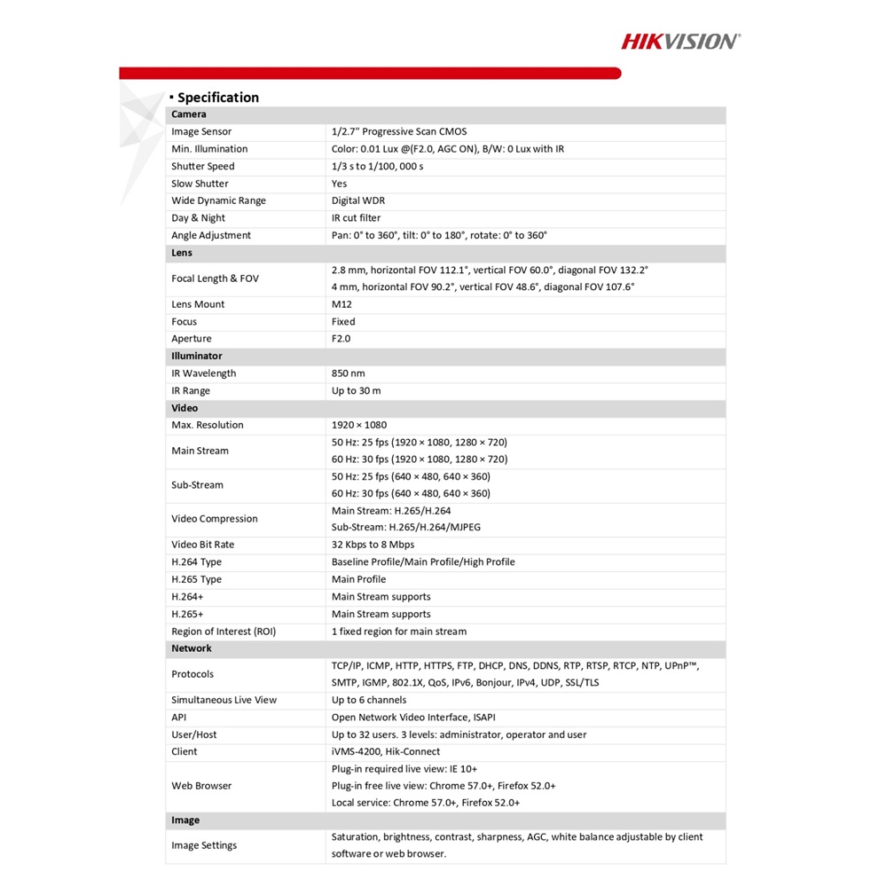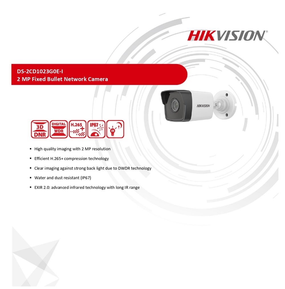 With its high-definition 2MP resolution, the DS-2CD1023G0E-I captures clear and detailed footage, allowing you to monitor your home, business or outdoor space with clarity and precision. No detail is overlooked, ensuring that the information you need is the most important.