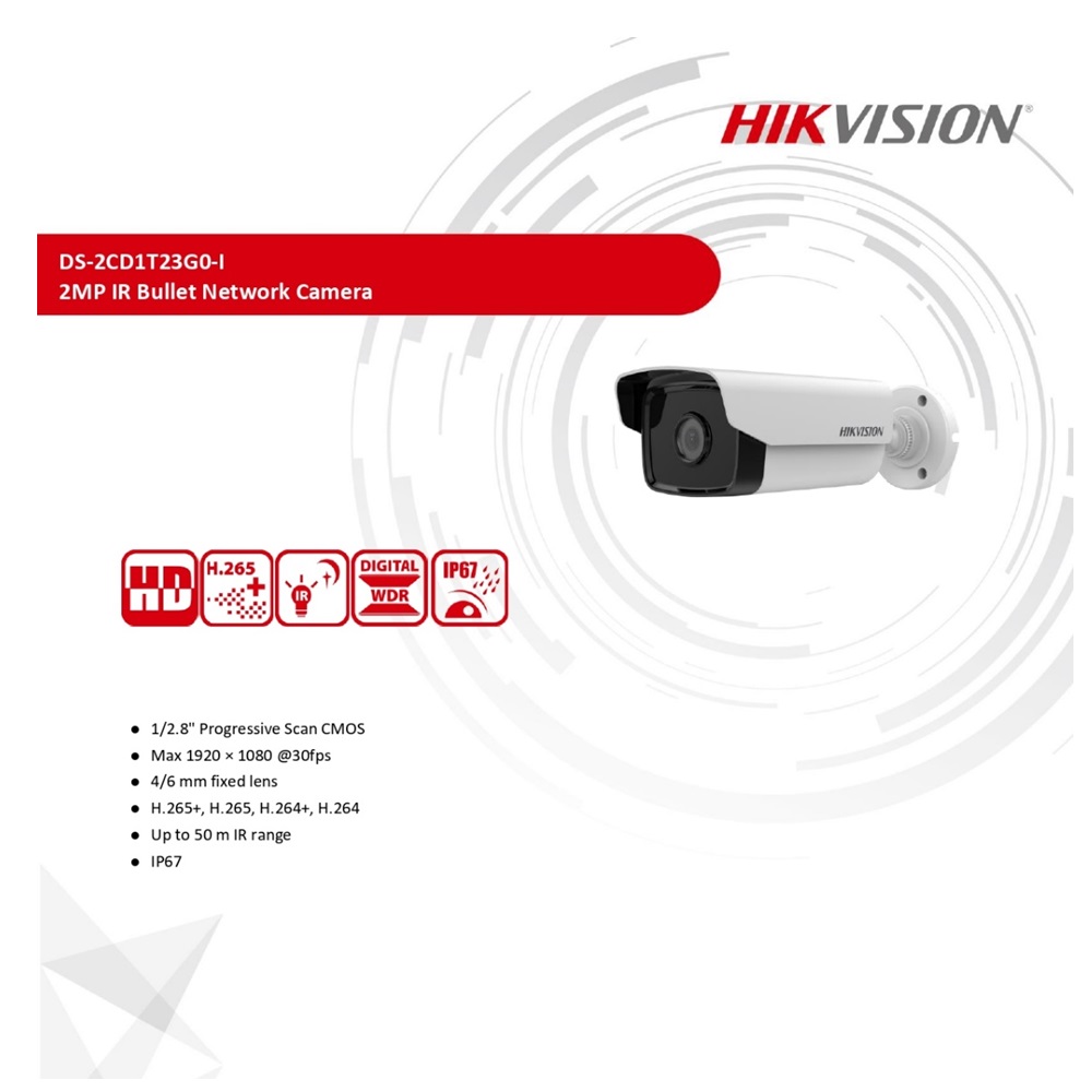 Expand your surveillance capabilities with the Hikvision DS-2CD1T23GO-I. With high quality imaging, efficient compression technology, wide IR range and DWDR technology, it is an ideal solution for high quality video surveillance with exceptional performance. Trust Hikvision for state-of-the-art technology and unparalleled peace of mind.