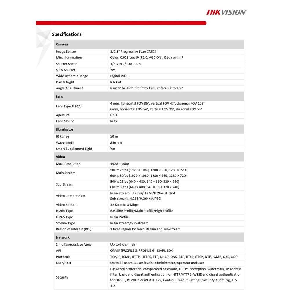 Introducing the Hikvision 2MP Exir Fixed Mini Bullet Network Camera (6mm) – an exceptional surveillance solution that combines high-quality imaging with robust features to meet your security needs. This mini bullet camera is designed to deliver excellent performance in various surveillance situations by providing excellent video quality and advanced functionality.