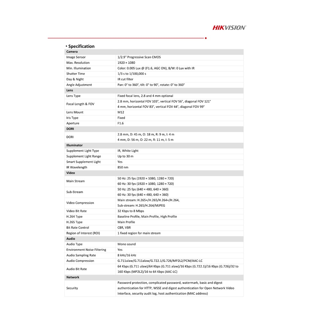 In summary, the Hikvision 2MP Fixed Bullet Network Camera DS-2CD1023G2-LIU is a feature-rich and reliable outdoor surveillance solution that combines high-resolution video, smart hybrid dual-light technology, weather resistance, motion detection, audio recording and local monitoring. . . . , , , , , , , , , , , , storage capacity. If you need to secure your home, business or outdoor area, this camera is equipped to provide the surveillance you need. Trust Hikvision's reputation for state-of-the-art security technology with the DS-2CD1023G2-LIU and ensure your property remains under surveillance around the clock.