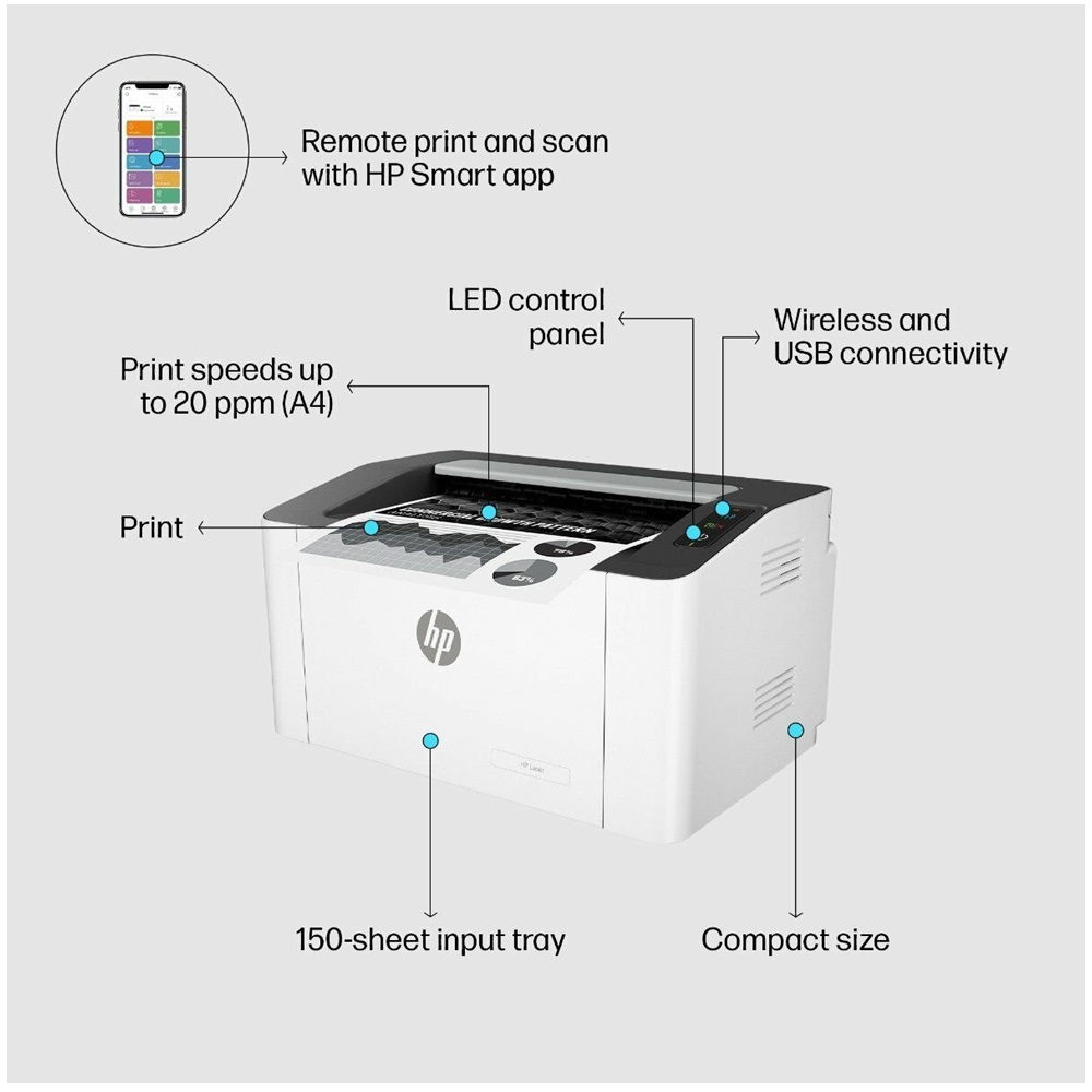 Introducing the HP 1008w Laser Printer (714Z9A) – a reliable and affordable monochrome printing solution designed to meet your printing needs with simplicity and efficiency. With Wi-Fi and USB connectivity options, black-and-white printing capabilities, and a sleek white design, this printer offers a practical and budget-friendly option for your printing tasks.
