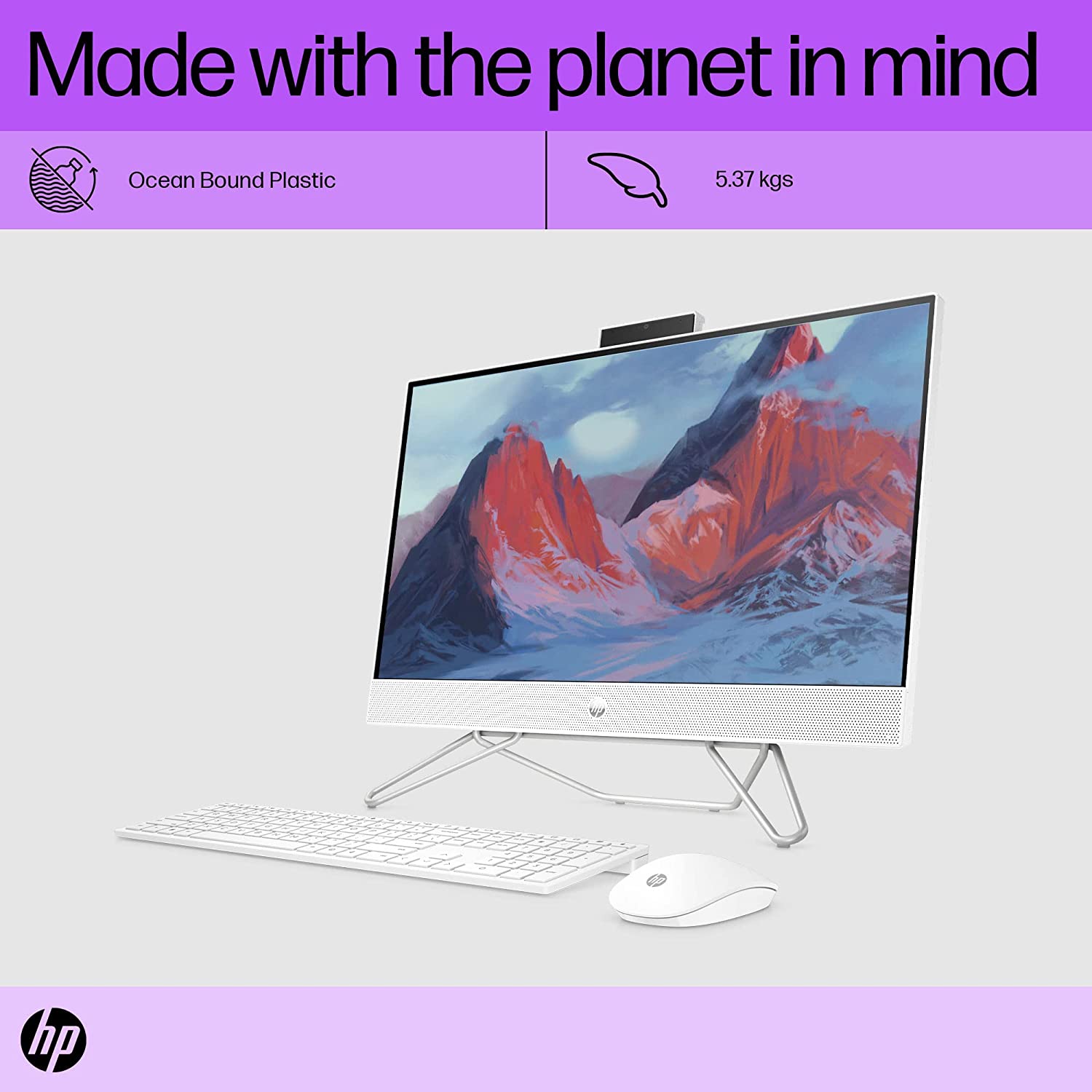The HP Pavilion All-in-One features a smooth snow white finish, sleek aesthetics and modernity. Its all-in-one design integrates all components into the monitor, eliminating the need for a separate tower and creating a clean and organized workspace.