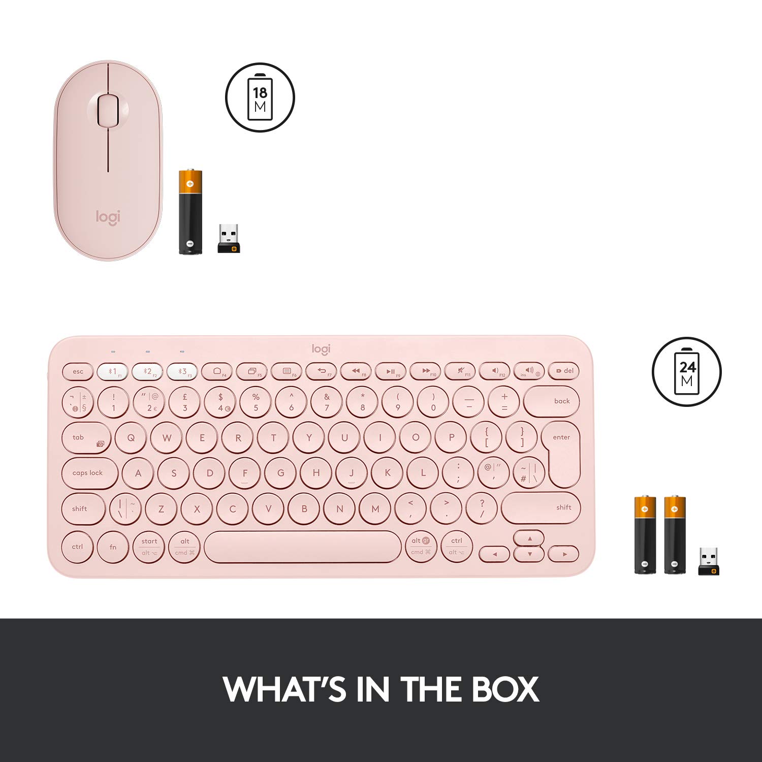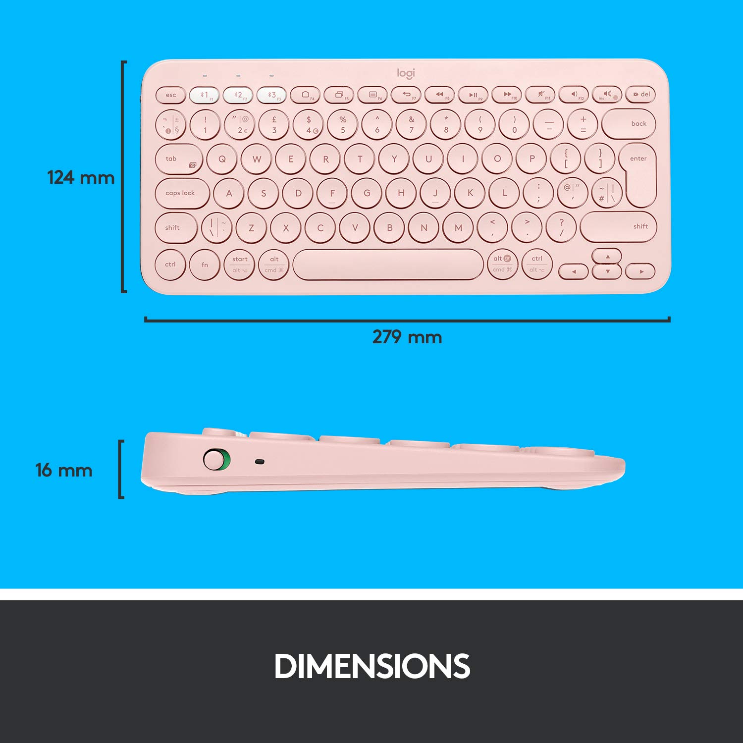 In short, the Logitech K380 Bluetooth Keyboard in Rose offers wireless convenience, multi-device connectivity and a comfortable typing experience. Its compact and portable design, along with long battery life, make it a reliable companion for productivity and creativity on the go. The stylish pink color adds a touch of sophistication to your workspace.