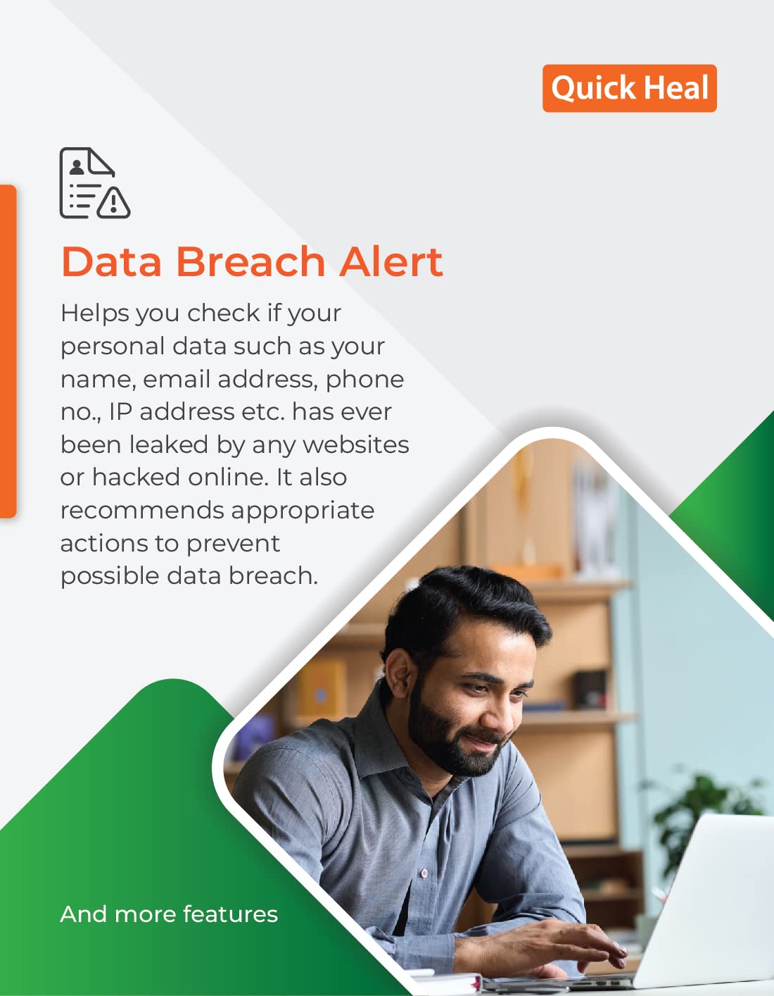With Quick Heal Antivirus Pro, you can protect your system from a wide variety of threats including viruses, malware, spyware, ransomware and more. Its robust real-time protection constantly monitors your device for any suspicious activity, instantly detects and blocks potential threats to keep your computer safe.