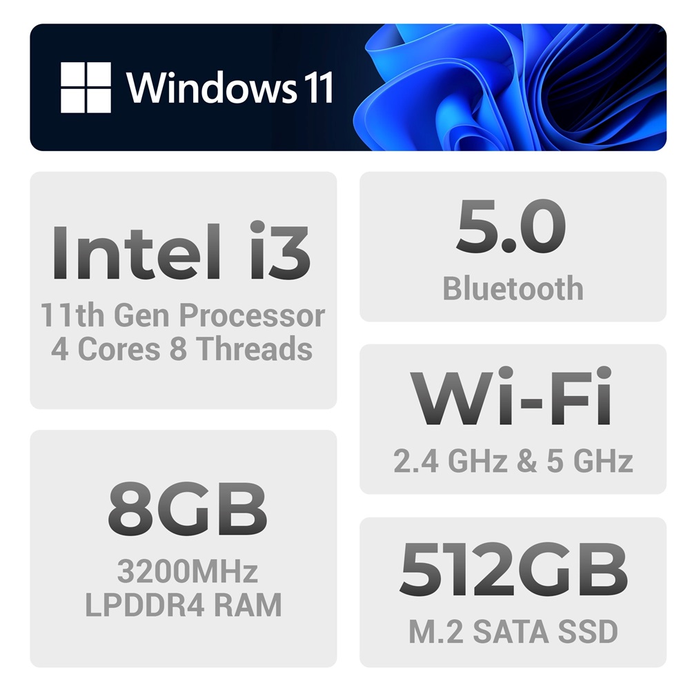 Intel Core i3-1125G4 Processor: The Zebronics Pro Series Y Laptop is powered by the Intel Core i3-1125G4 processor, providing reliable computing performance for everyday tasks.